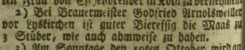 Godfried Arnolsweiller vor Lyskirchen ist guter Bieressig die Maas zu 3
