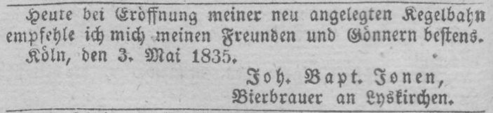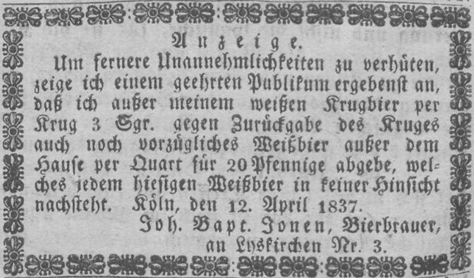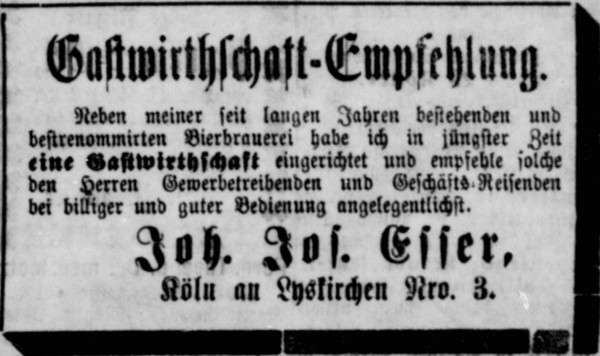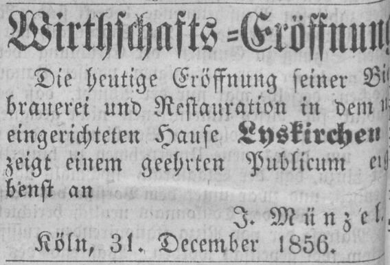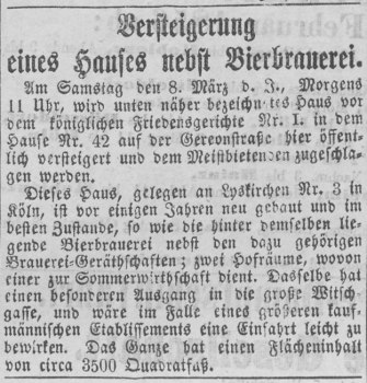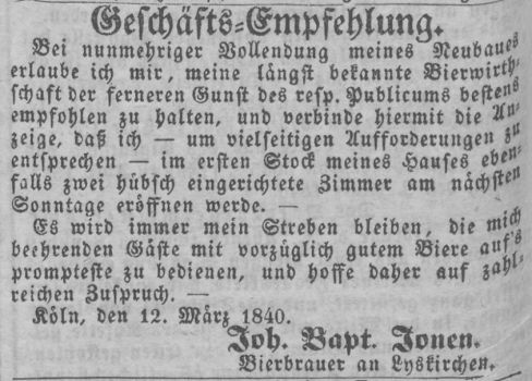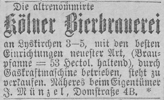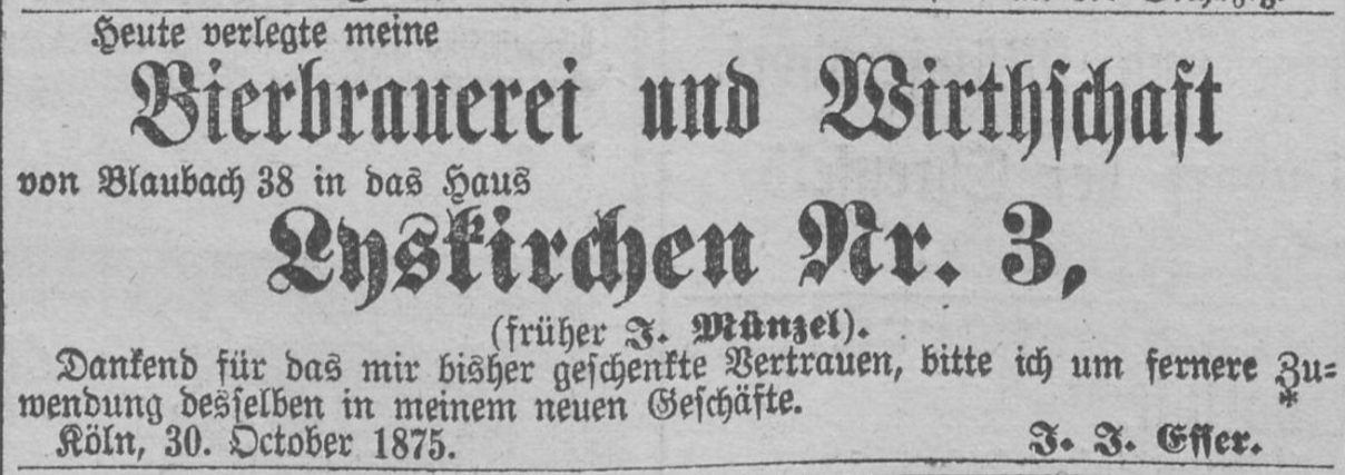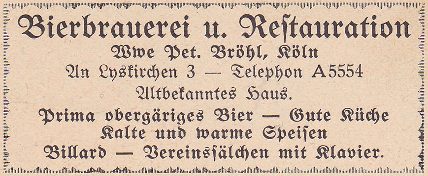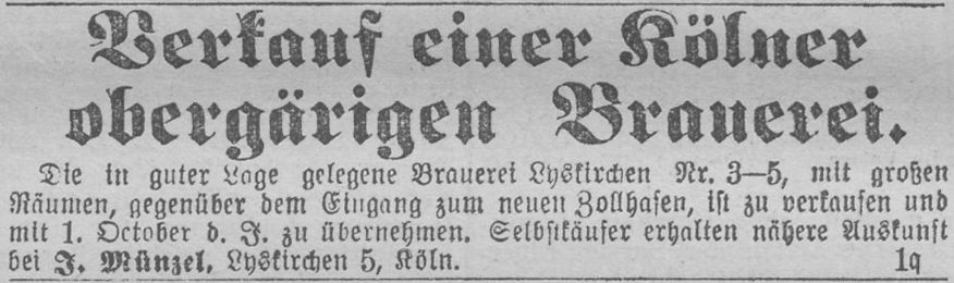 über die Brauerei An Lyskirchen 3 berichtet wird.