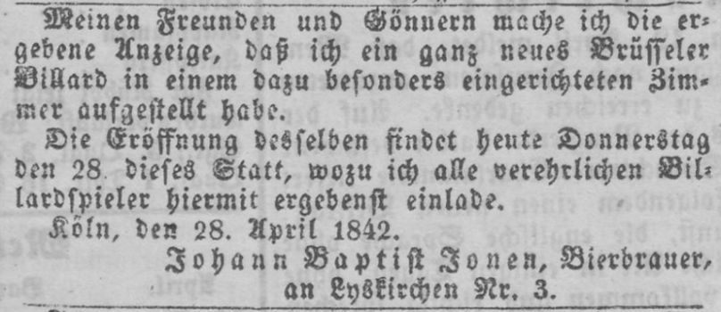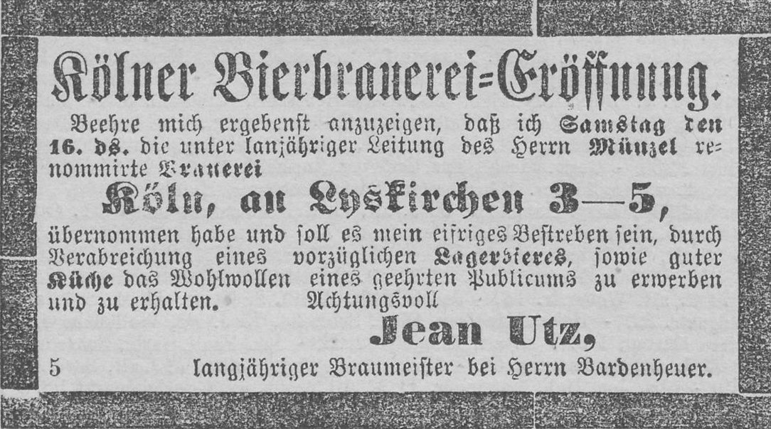 Die Brauerei an Lyskirchen 3 wurde erstmals im Jahr 1788