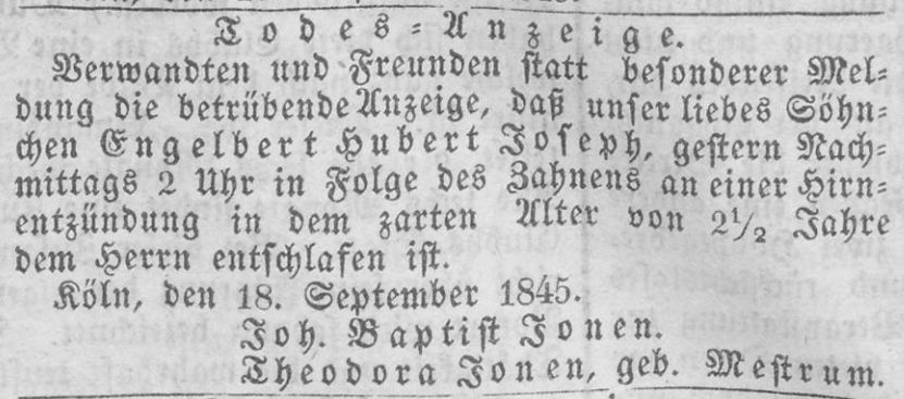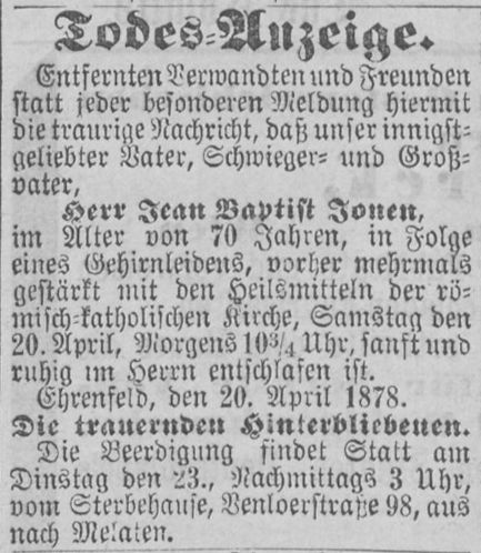 Vermutlich damit Johann Baptist Jonen’s Geschwister auch