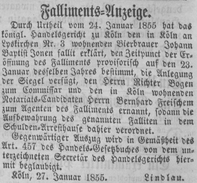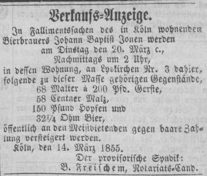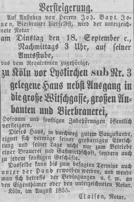 Weiter taucht ein Johann Egidius Jonen auf, der die Brauerei