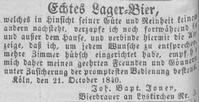war das Bier aus der Brauerei An Lyskirchen 3 verschiedenen Quellen zufolge