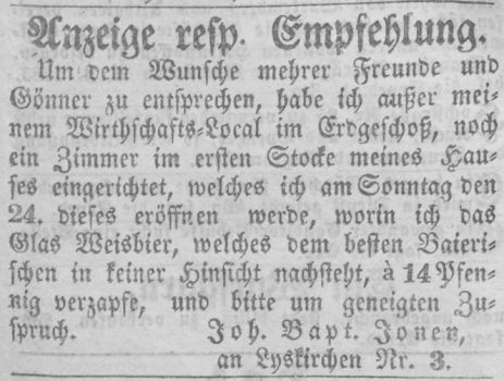 erwähnt [19]. Die Brauerei ging durch verschiedene Hände, bis Johann Baptist