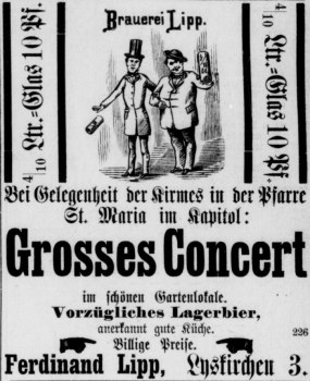 in Köln porträtierte, bezeichnete das um 1890 produzierte Bier des