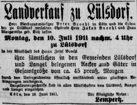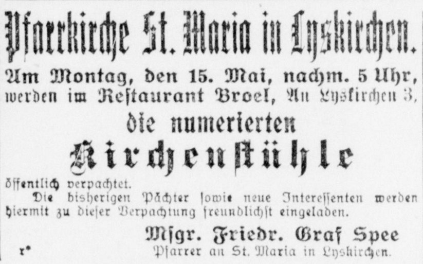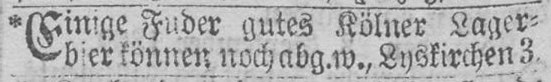 Lyskirchen stammt aus dem Jahr 1788 und erfolgt im Kontext einer Anzeige, in
