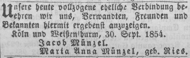 und reelle Bedienung mich jedes Zuspruches würdig beweisen werde. Köln, im