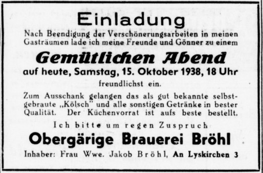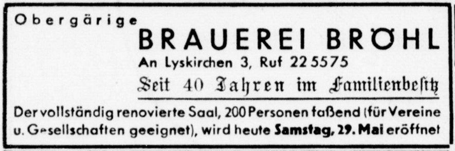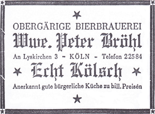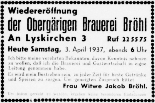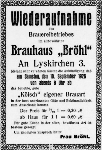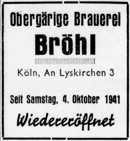 Schluss geführte hatte, ist meist von der "Brauerei Bröhl" die Rede, wenn