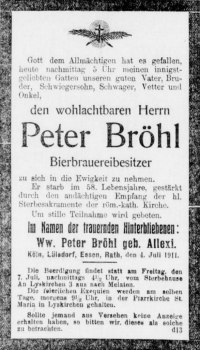 Im Jahr 1896 übernahm Peter Bröhl die Führung der Brauerei.