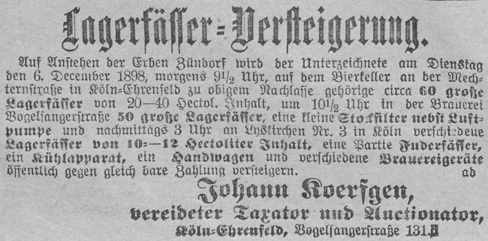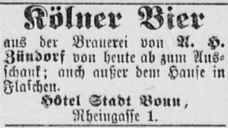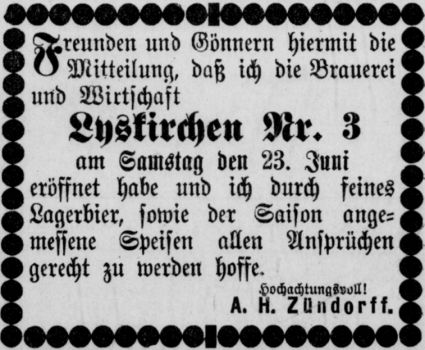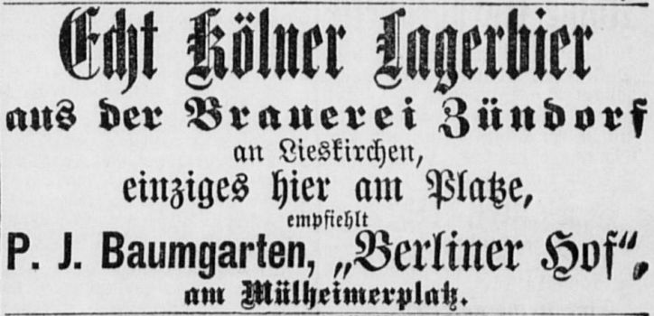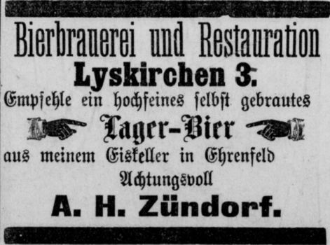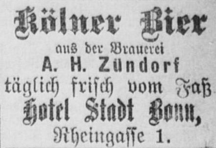 Brauerei. Nach einigen Wechseln der Betreiber übernahm im Jahr 1888 Arnold Hubert Zündorf die Führung der Brauerei. Die Brauerei war seinerzeit sehr modern