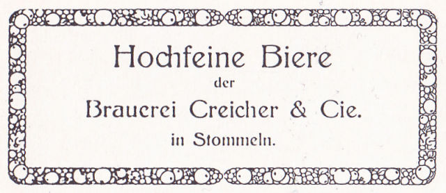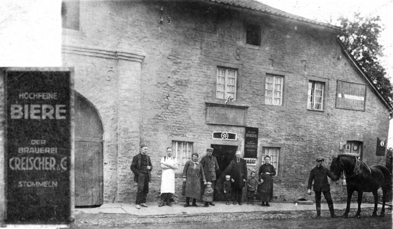 erkennen ist das Schild der "Brauerei Creischer & Cie, Stommeln", welches