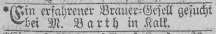 1866, in der Michael Barth einen Brauergesellen sucht.