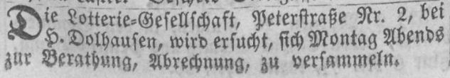Immer Ärger mit der Lotteriegesellschaft. Anzeige von Anton Gerhard