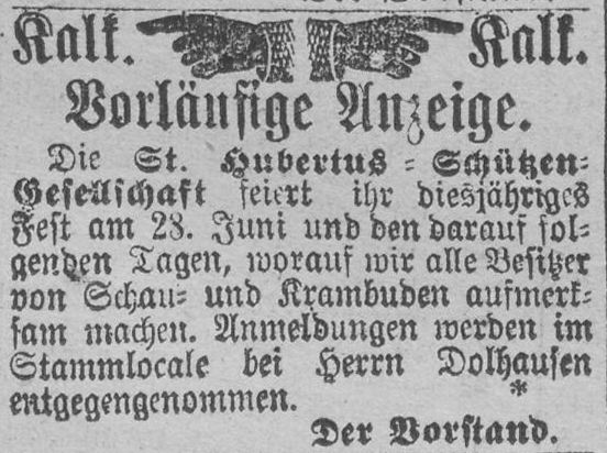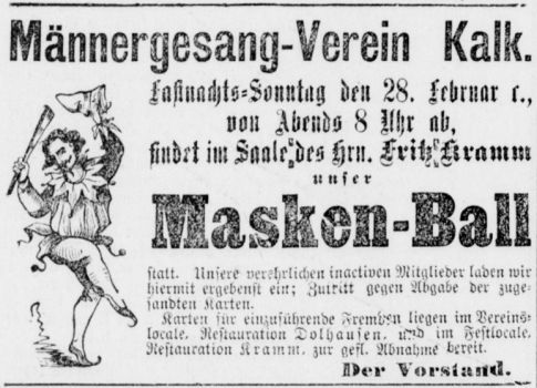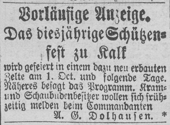 in der Hauptstraße 199 in Kalk. Auch hier ist der erste Nachweis eine Anzeige, in