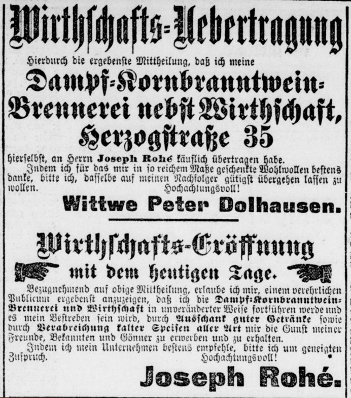 in der Cäcilienstraße 2. Anton Gerhard Dolhausen führte diese