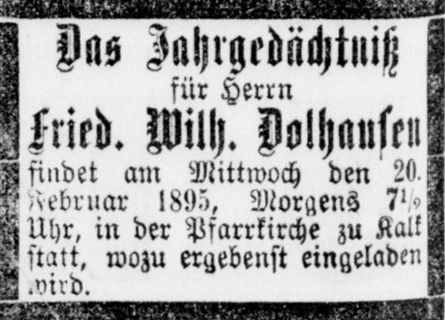 Dolhausen. Anton Gerhard Dolhausen verstarb im Jahr 1896 [9].