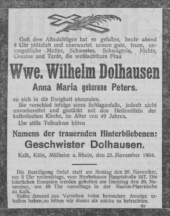 Dolhausen geb. Opbergen im Alter von nur 46 Jahren. Vier Jahre später, im