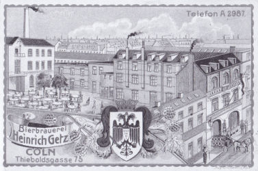 Eines der bekanntesten und beliebtesten Kölner Brauhäuser ist das Brauhaus für Obergärung "Zum halben Mond" von Heinrich Getz in der Thieboldsgasse Nr.75. Weder durch bevorzugte Lage noch durch Altertümlichkeit des Hauses hat es seine Beliebtheit errungen, sondern lediglich durch Vorzüglichkeit des echt obergärigen kölschen Bieres, welches hier seit langem gebraut wird. Dazu hat auch dieses Haus seine lange Geschichte: Vom Jahre 1251 bis 1798 stand hier das ehemalige Soeten-Haus, benannt nach seinem ersten nachweisbaren Besitzer. Seit 1335 ist in diesem Hause Brauerei betrieben worden, die zeitweise wieder einging, aber 1705 wieder als "Brauhaus zum halben Mond" auflebte und bis heute bestehen geblieben ist. Der Neubau des jetzigen Vorderhauses stammt von dem Architekten Robert Perthel. Seit 1821 hat das Brauhaus seine Inhaber 13 Mal gewechselt; von 1919 an war Heinrich Getz Besitzer und Brauer im "Halben Mond". Da er unheilbar erkrankt ist, hat in diesem Jahre Gatzweiler aus Neuß das Brauhaus übernommen, das er in der althergebrachten Weise weiterzuführen gewillt ist.