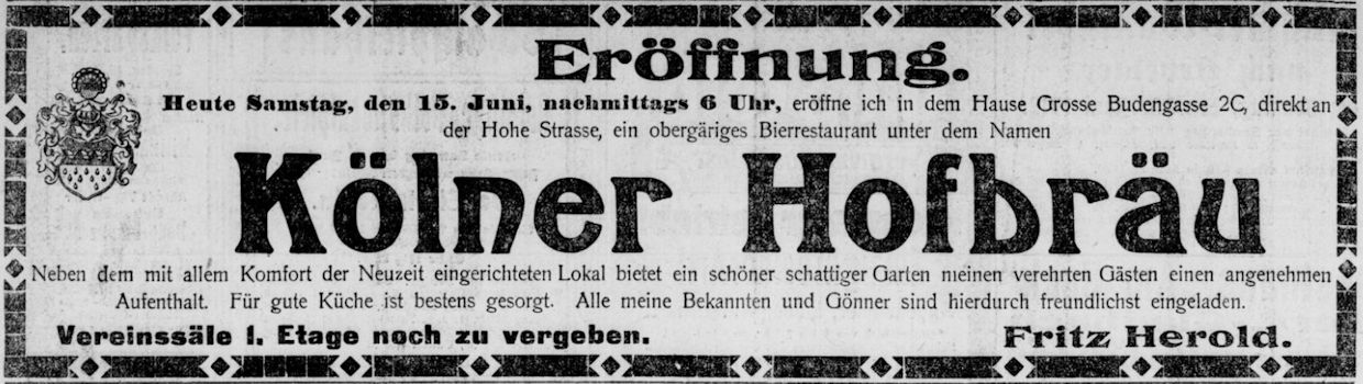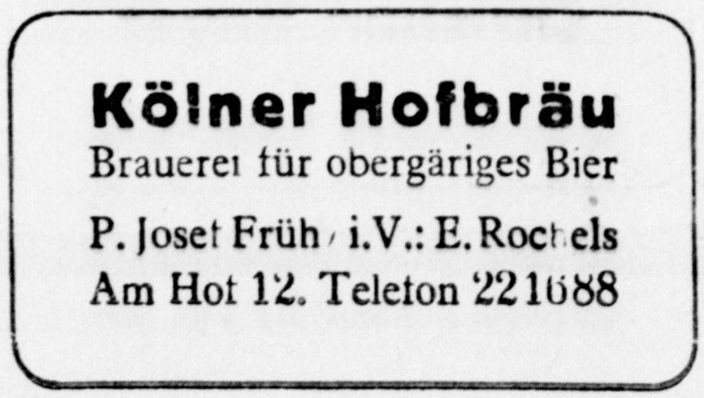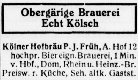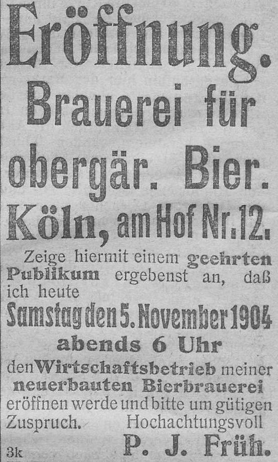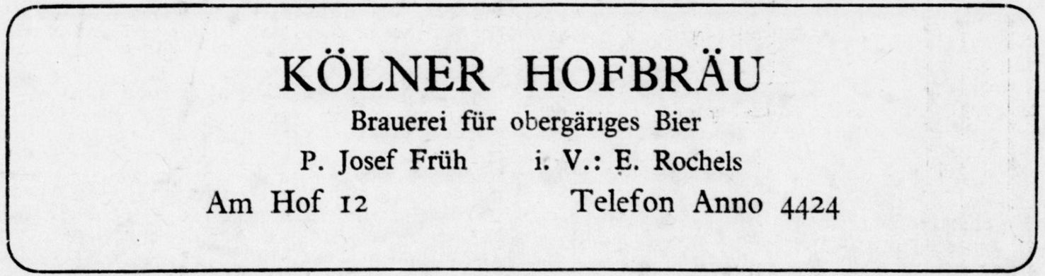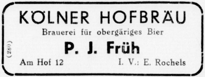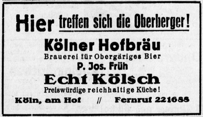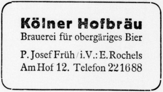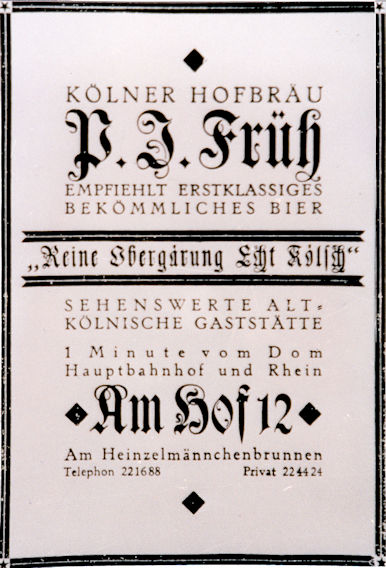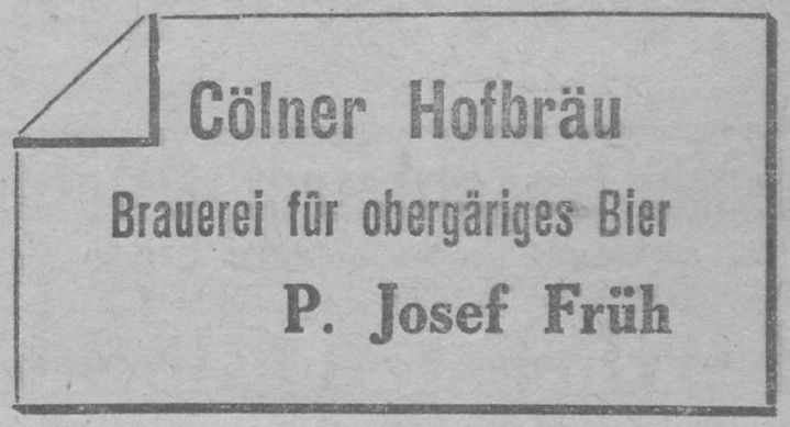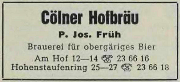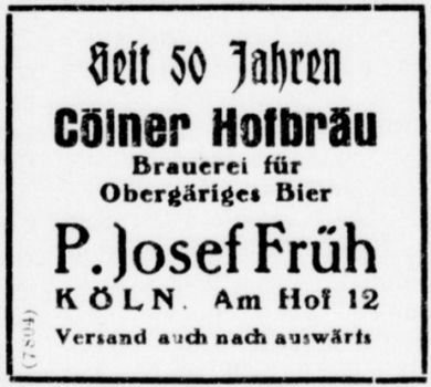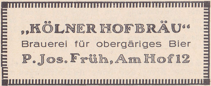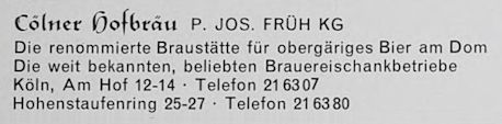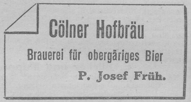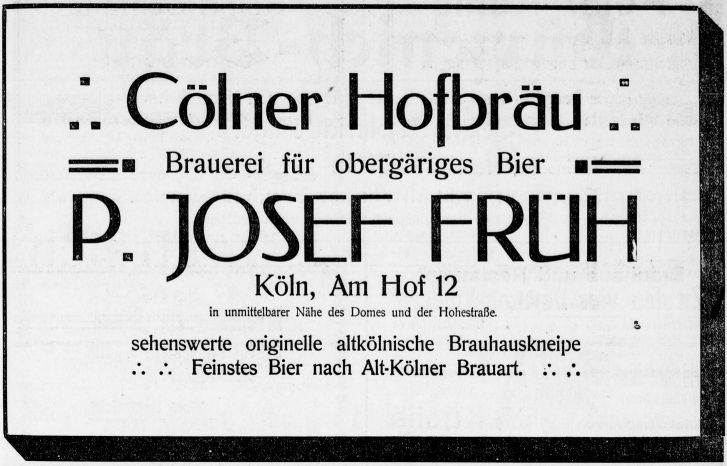 Das „Cölner Hofbräu P. Josef Früh“, wie die Brauerei