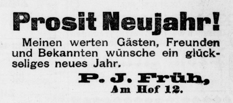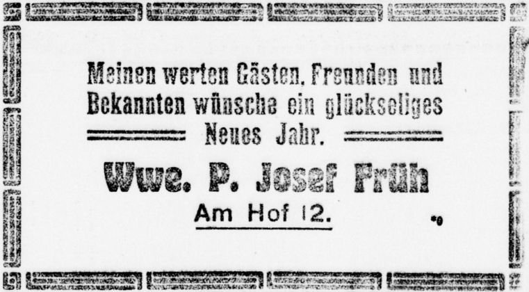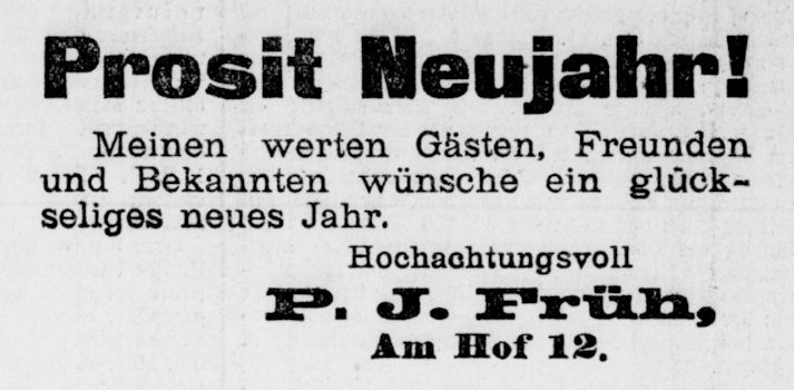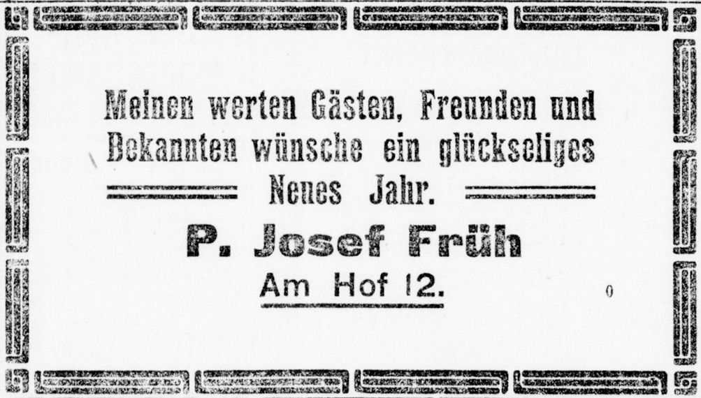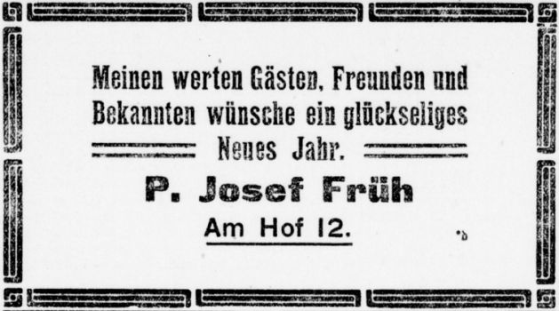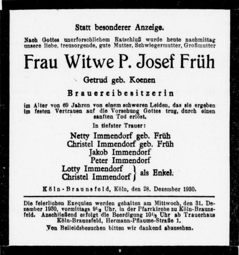der Name „Früh“, Peter Josef Früh hatte nur 2 Töchter welche jeweils den