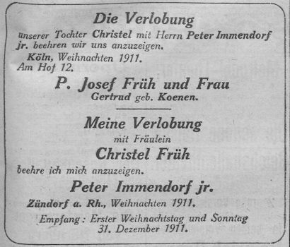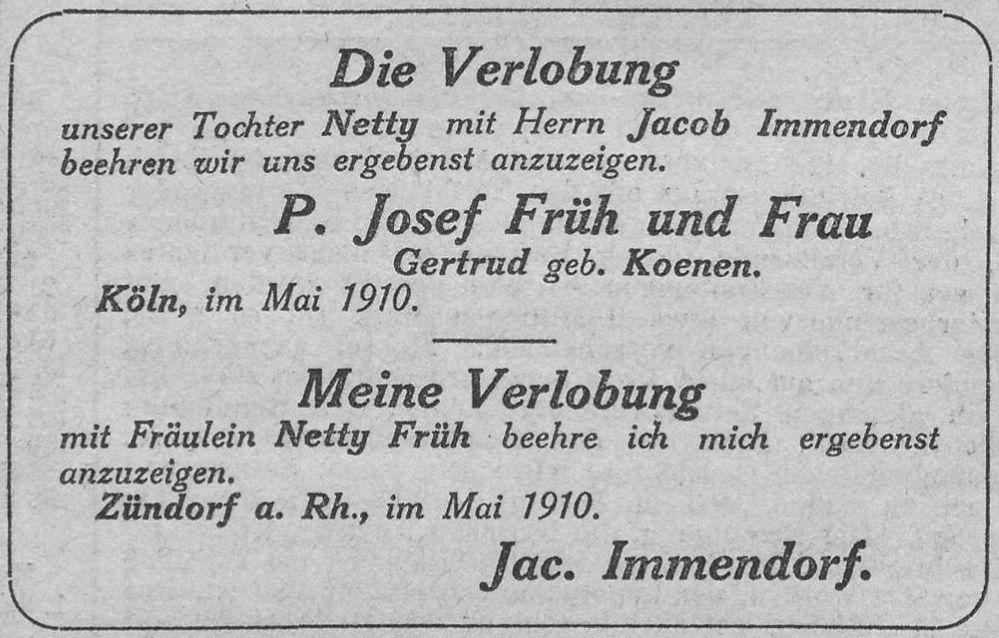 Carl Schmitz war vermutlich Peter Josef Frühs Tante Adelheit Immendorf geb.