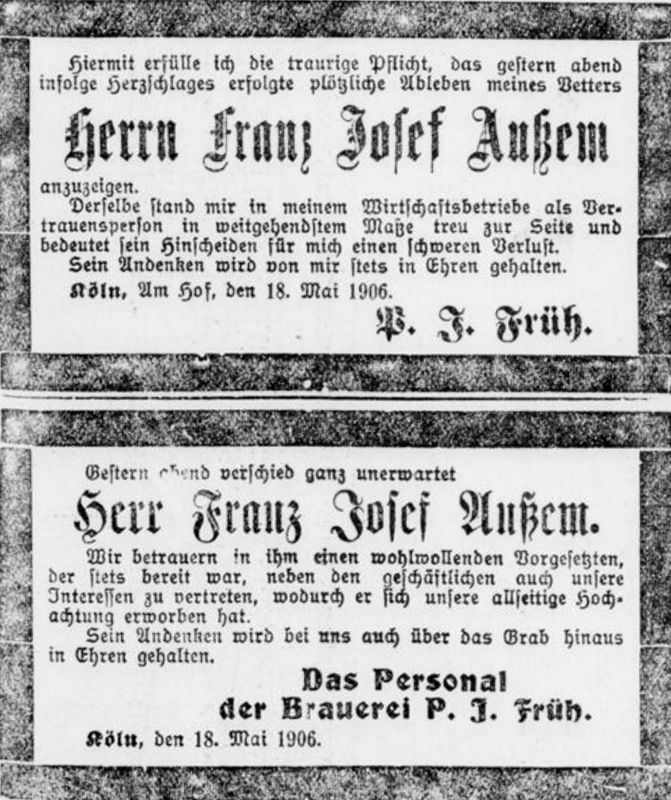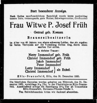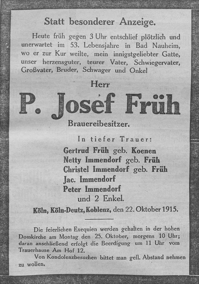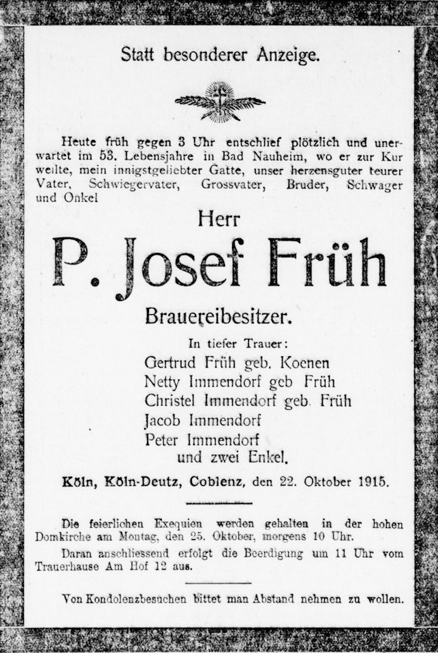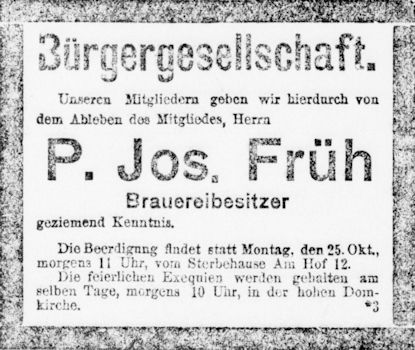 einer Brühler Brauer-Familie. Sein Vater, Matthias Früh, betrieb in den 1860er