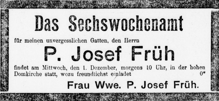 Peter Josef Früh, geboren am 27. Januar 1862, stammte aus