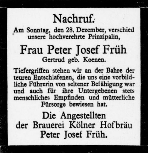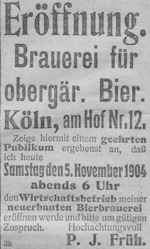 Peter Josef Früh gründete im Jahr 1904 seine Brauerei in Köln