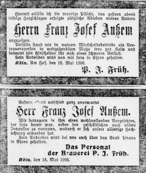 Aposteln-Bräu, verkaufte Peter Josef Früh die florierende Hausbrauerei an