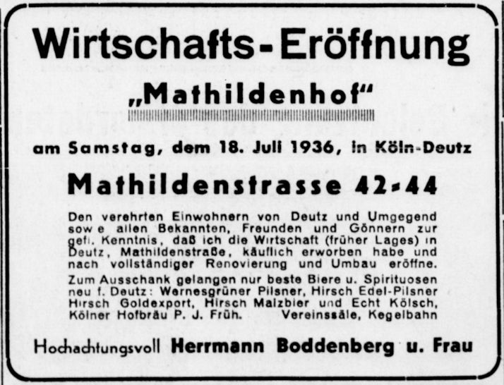 wurde und in der Kölnstraße 44 lag. Laut [11] betrieb Matthias Früh die