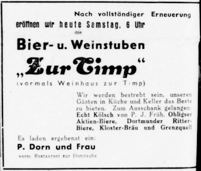Küppers Kölsch bis 1964 als Lohnsud bei Früh brauen. Per Tankwagen ging
