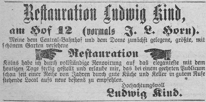 Restaurant Comp, Neumarkt 16 hierselbst, das zu Köln am Hof gelegene