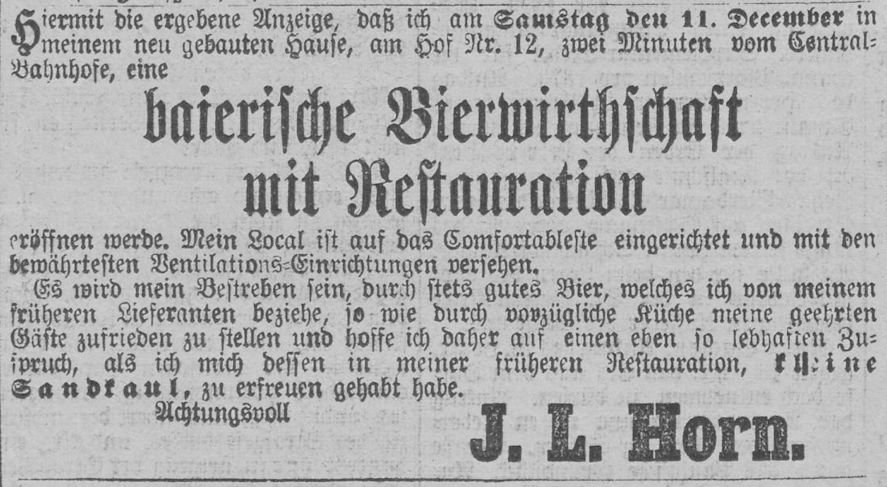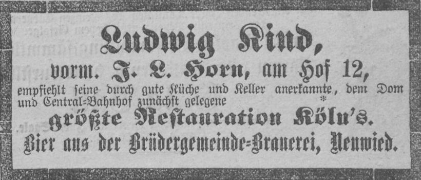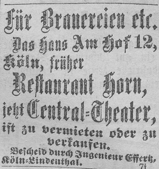 Köln. In Teilungssachen der Erben des Restaurateurs J. L. Horn wird der