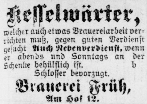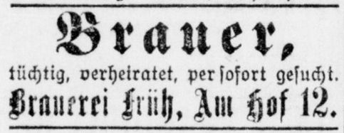 Peter Joseph Früh arbeitete bis ins Jahr 1894 als Braumeister