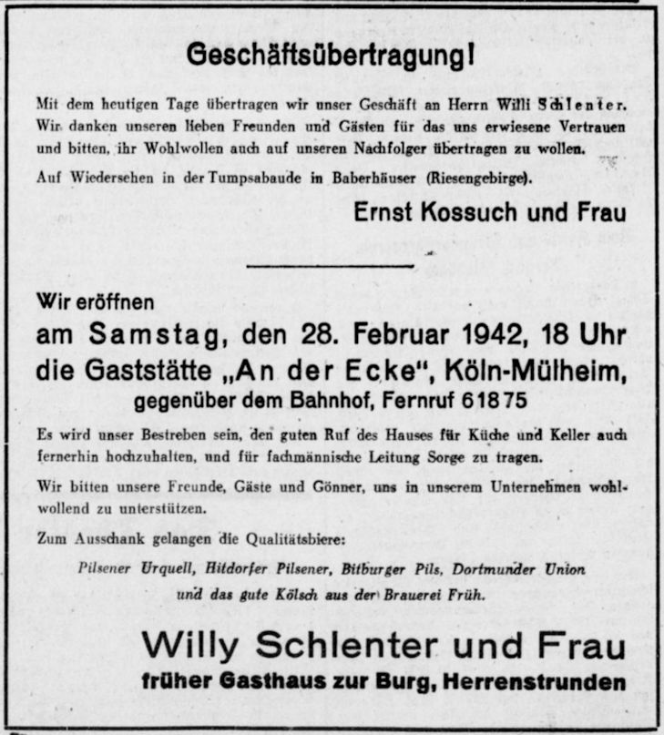 in der Schmitz’chen Brauerei, bevor er sich entschloss, seine eigene