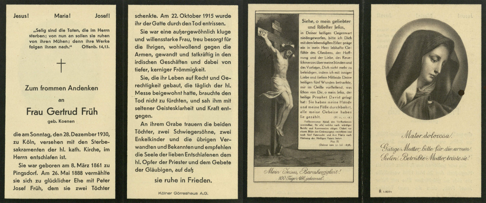 Pingsdorf (Heute ein Stadtteil von Brühl) stammende Maria Gertrud („Traudchen“) Koenen. Für Peter Josef Früh