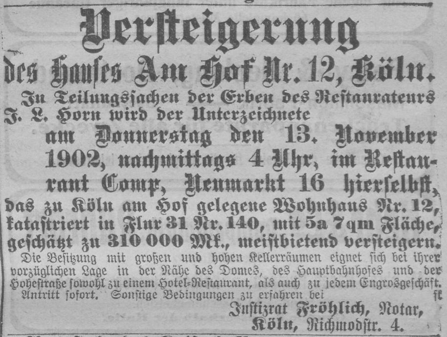 [12, 11.10.1902] „…Versteigerung des Hauses Am Hof Nr. 12,