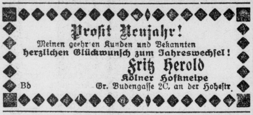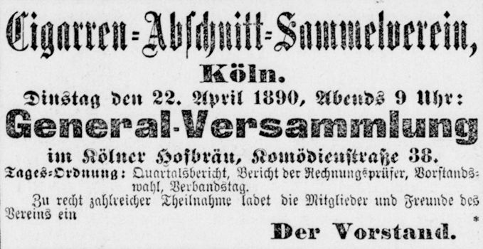 Bedingungen zu erfahren bei Justizrath Fröhlich, Notar, Köln, Richmodstr.