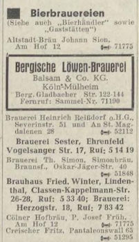 Hausbrauereien in Köln, bis in den 1960er Jahren die Expansion begann. Der