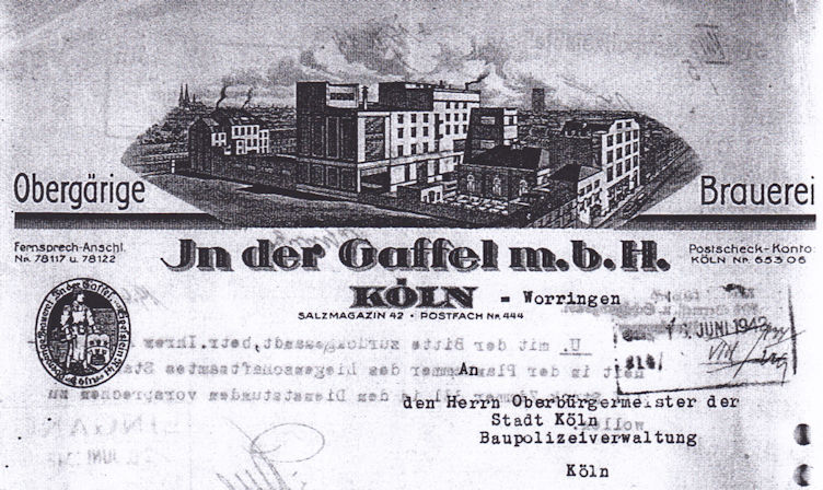 Drahtanschrift: Gaffelbräu Köln.