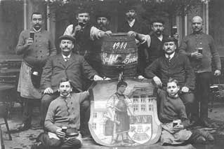 Auf den abgebildeten Postkarten und Fotos ist die Entwicklung am Eigelstein 41 halbwegs nachvollziehbar, allerdings liegt die Rolle von Ludwig Baller etwas im Dunkeln. Wenn man die abgebildete Postkarte PK001 sieht, könnte man meinen, Ludwig Baller wäre Besitzer und Brauer in der Obergärigen Brauerei in der Gaffel gewesen. Auf der Website der Familie Baller [3] (schon seit längerem leben alle Familienmitglieder in den Niederlanden) wird auch ausgeführt, dass Ludwig Baller um 1910 Besitzer der Brauerei gewesen wäre. Auf dem abgebildeten Foto FB001 der Belegschaft der Brauerei aus dem Jahr 1911 ist er auch an prominenter Stelle abgebildet. Gesichert ist aber nur, dass er zumindest von 1909 bis 1915 die Restauration am Eigelstein 41 betrieben hat. Vielleicht war er auch an der GmbH beteiligt, näheres ist aber leider nicht bekannt.