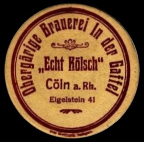 Cöln, Rhein. In das Handelsregister ist am 29. Mai 1908 eingetragen: Nr. 1108 die Gesellschaft unter der Firma: "Obergärige Brauerei in der Gaffel mit beschränkter Haftung", Cöln. Gegenstand des Unternehmens: Betrieb einer Brauerei in Cöln. Stammkapital: 100.000 Mark. Geschäftsführer: Peter Becker, Kaufmann, Worringen. Gesellschaftsvertrag vom 24. Mai 1908. Ferner wird bekannt gemacht: Oeffentliche Bekanntmachungen der Gesellschaft erfolgen im Deutschen Reichsanzeiger. Kgl. Amtsgericht Cöln.