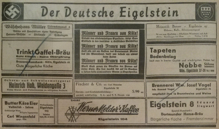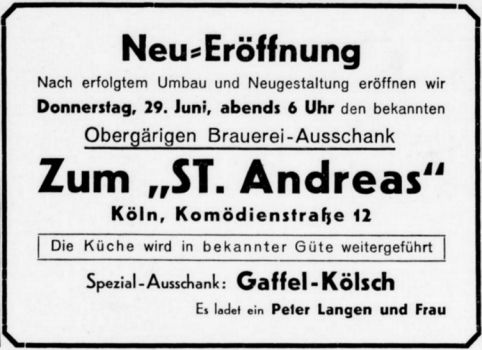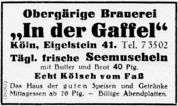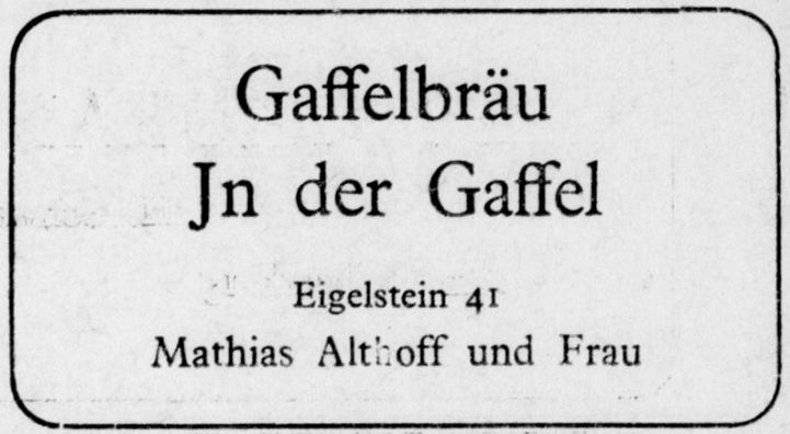 Weiterhin ist in einer Zeitungsannonce der obergärigen Brauerei "In der Gaffel" zu lesen: