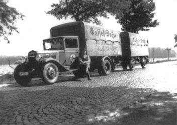 Foto eines Auslieferungs-LKWs der Brauerei mit der Aufschrift "Gaffel-Bräu".