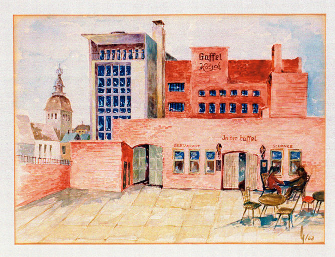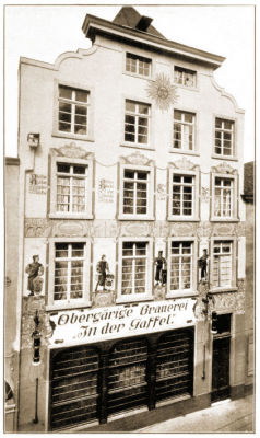 Foto der "Obergärigen Brauerei in der Gaffel", vermutlich zwischen