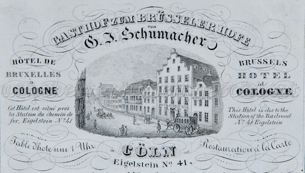 Werbeanzeige des "Gasthof zum Brüsseler Hofe" am Eigelstein 41 aus dem Jahr