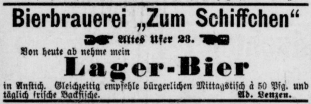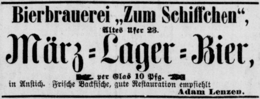 Anzeige der Brauerei Zum Schiffchen aus dem Jahr 1878