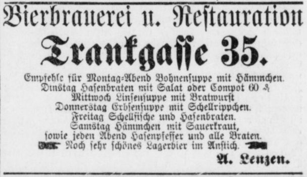 Lenzen noch die Brauerei Zum halben Mond in der Trankgasse 35, bis er im