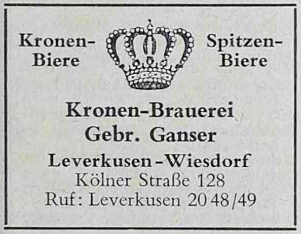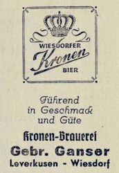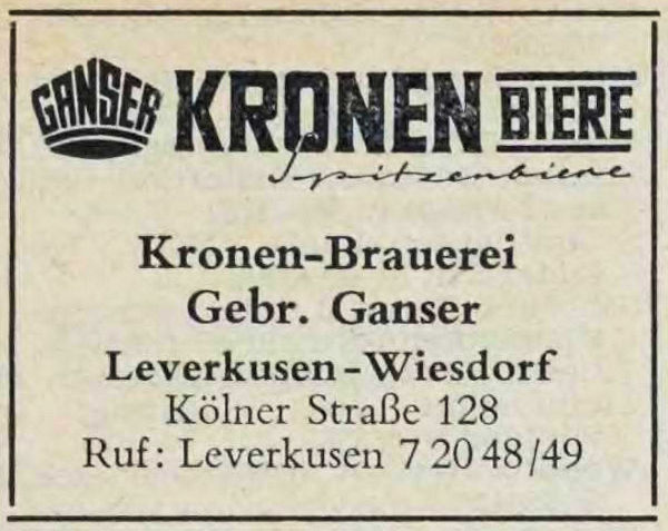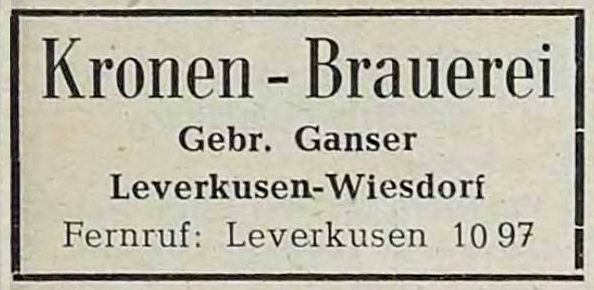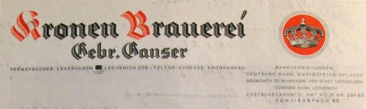 Kronen Brauerei Gebr. Ganser, K. G., Leverkusen-Wiesdorf,