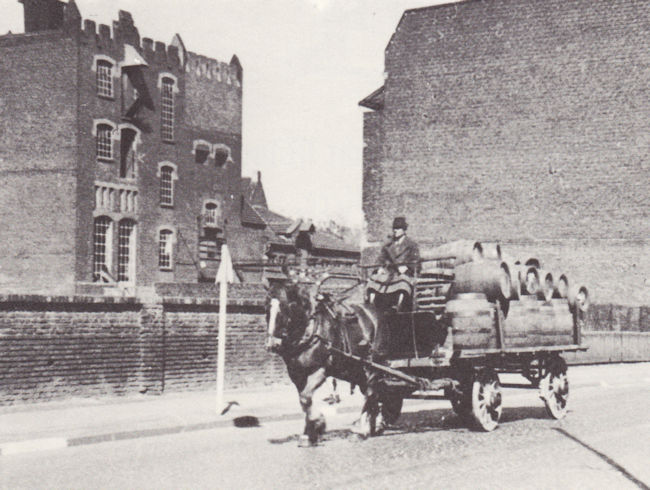 Foto der Brauerei in der Düsseldorferstraße mit Brauerei-Kutsche im