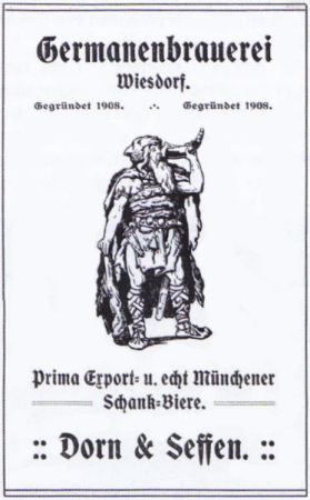 Werbung der Germanenbrauerei Dorn & Seffen aus dem Jahr 1909